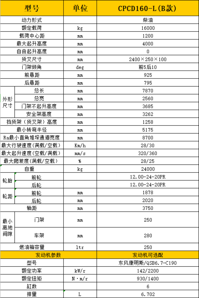 ·發動機選用符合國三排放法規的康明斯發動機,康明斯發動機在重型叉車廣泛應用,配件供應充足,維修方便。