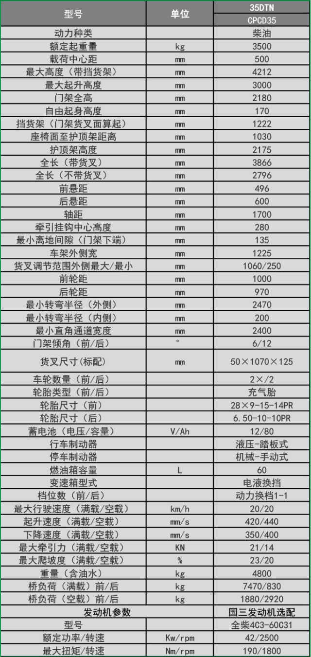 ·標(biāo)準(zhǔn)寬視野門架,駕駛室內(nèi)儀表下移,增大駕駛員前方視野 ·起升速度快,爬坡能力強(qiáng),作業(yè)效率高