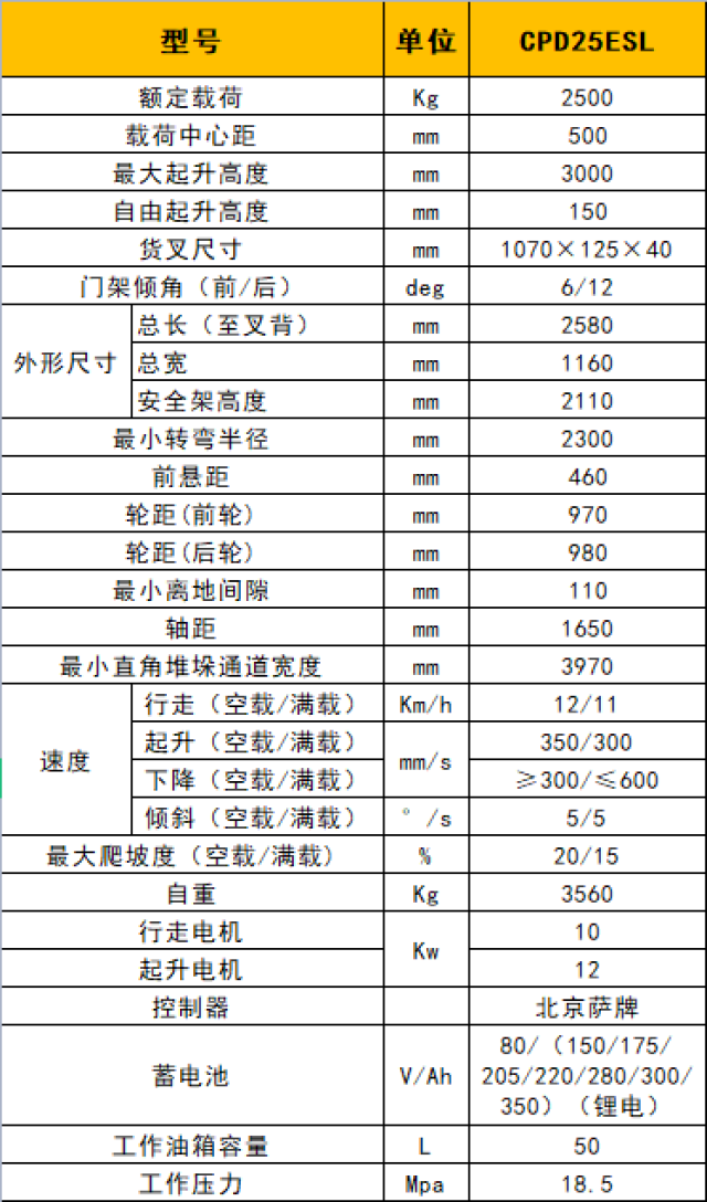 ·性能優異:起升/傾斜、行駛、爬坡性能與內燃車完全相同;